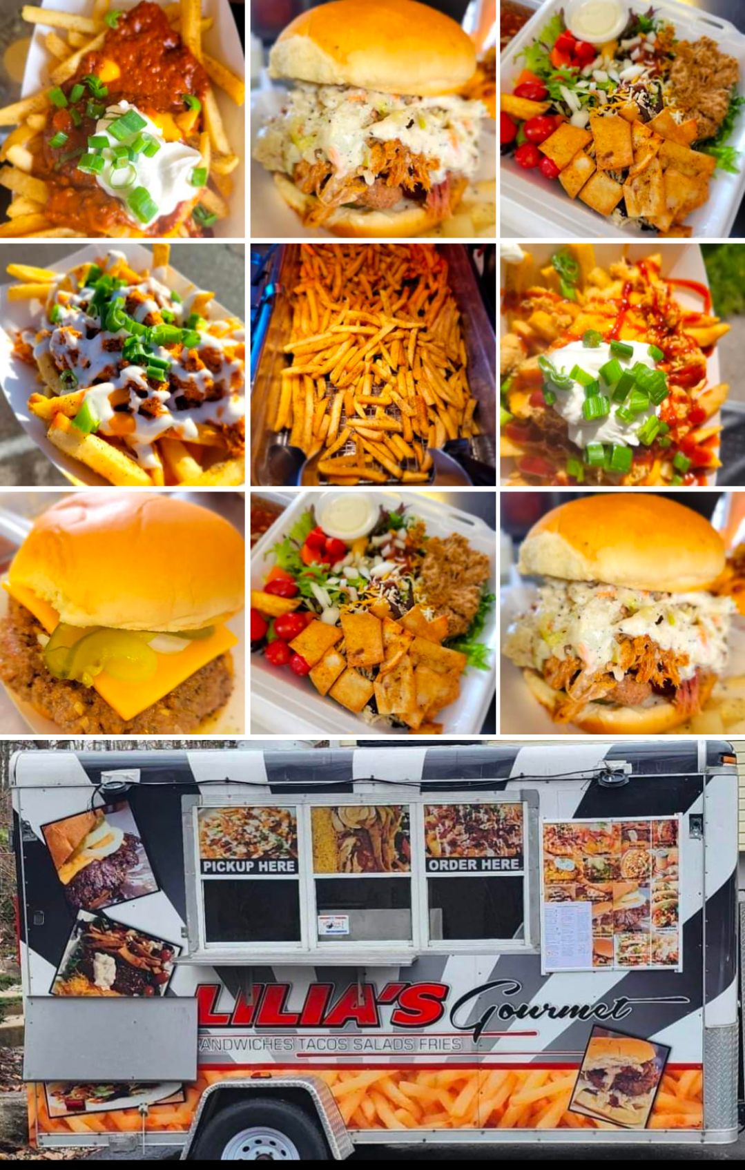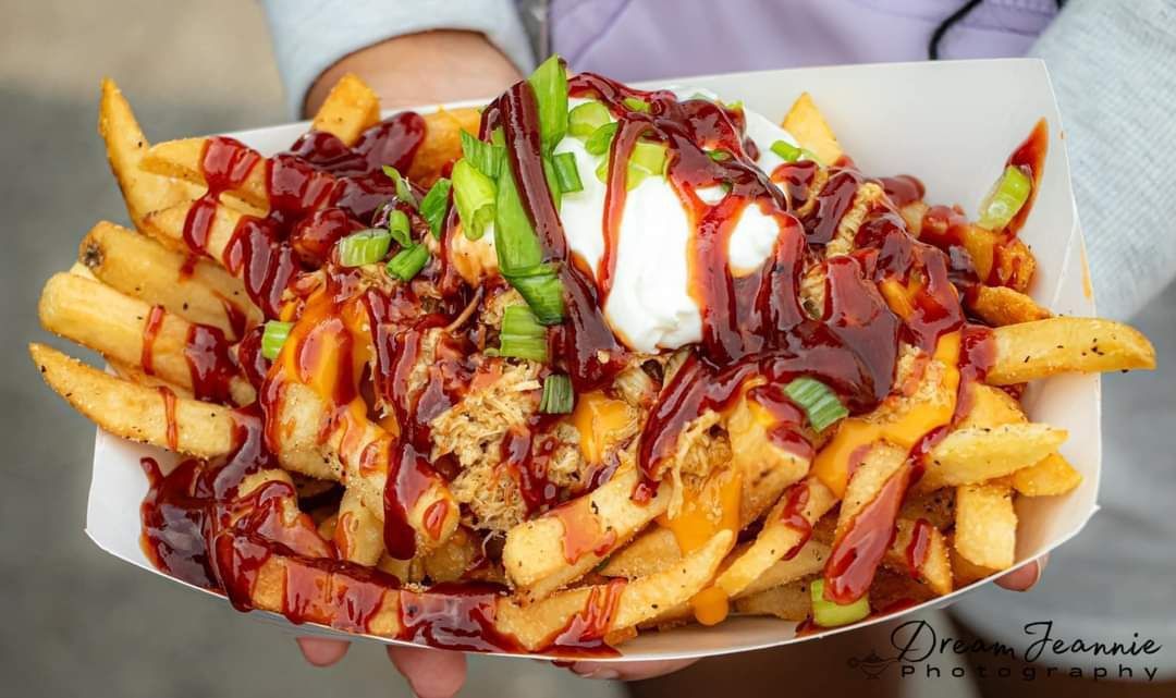 Award winning food truck serving Gourmet Salads, Pork, Chicken and Steakburger sandwiches, 6 different loaded fries along with veggie fries, Specialty Pork. Chicken, Buffalo chicken and Veggie Tacos